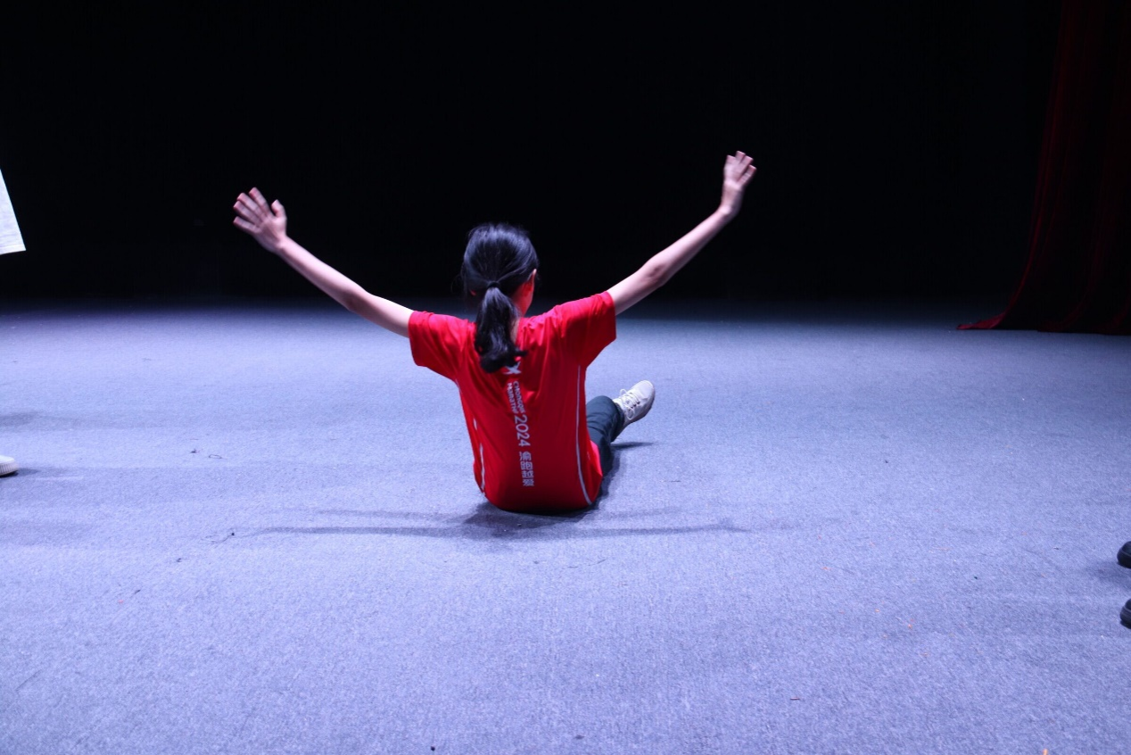 随后,剧社成员先后进行“谁是杀手”、动作接龙、情景演绎三个趣味活动。剧社成员在活动中相处更加融洽,能够快速地进入到人物关系更亲密的戏剧情景之中。在“谁是杀手”环节中,具有丰富表演经验的熊卿晨同学眉头紧锁,像受到子弹冲击力一般捂着肚子往后一躬,“咚”的一声跪地、倒下,完全沉浸在了游戏中,其他剧社成员也在这种氛围带动下全身心地投入活动。随后的情景演绎环节中,剧社成员更是渐入佳境,相互配合,将情感冲突表现得淋漓尽致,呈现了一幕幕精彩的表演。