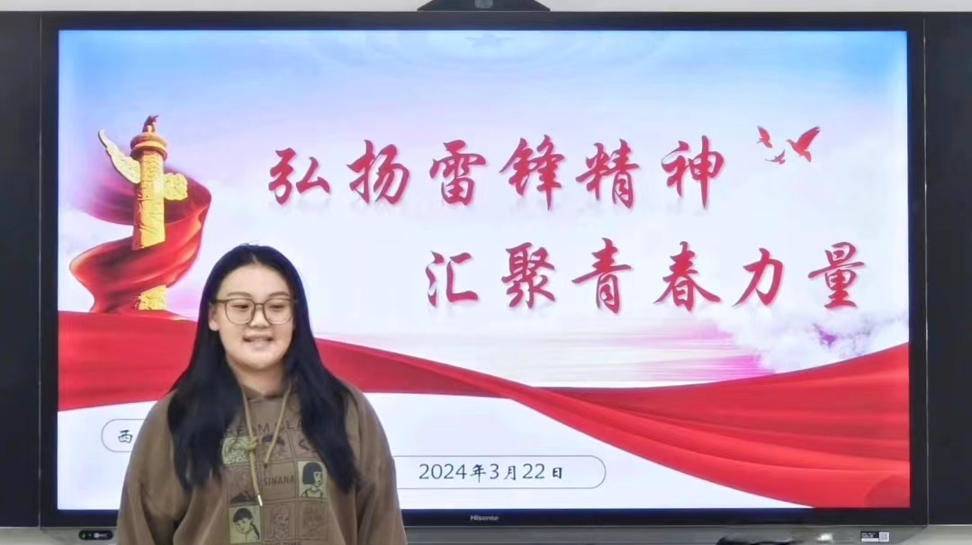 致敬雷锋,感悟精神。本次团日活动从观看一段关于雷锋精神的视频开篇,在声画交织的渲染下,团员们仿佛被带入了雷锋同志生活的时代,切身体会到了他炽热的心灵与毫不动摇的信仰。视频结束后,主持人张雨倩详尽地介绍了雷锋的生平事迹以及雷锋精神的时代内涵。通过她的精彩讲解,团员们对雷锋精神有了更深刻的理解与认识。