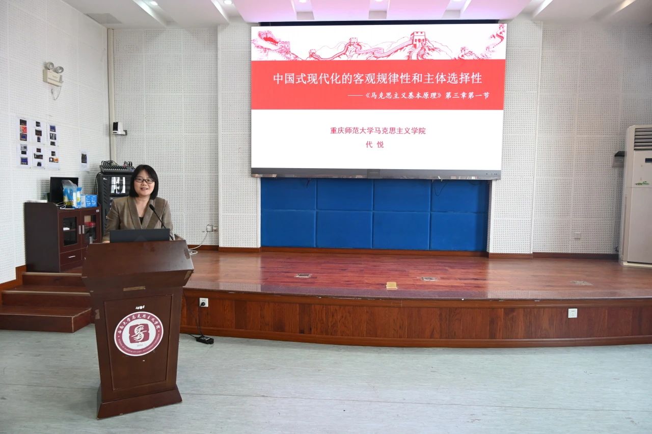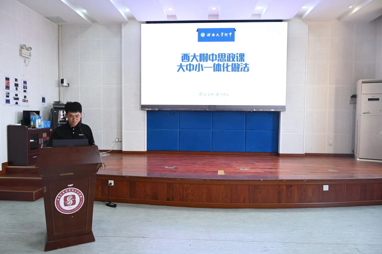 集体备课会第二环节由大中小学各学段思政课教师围绕“两会”精神一体化融入思政课教学进行了说课展示。伟德victor1946附属小学陈晓老师以“小水滴的诉说”为题展示了绿色发展理念融入小学思政课教学的设计,重庆市南开中学陈庆老师以“家校共育、爱在家人”为题呈现了教育强国理念融入初中思政课教学的设计,重庆市第一中学欧阳以芮老师以“党建+思政”为主题展示了“坚持党的领导”融入高中思政课教学的设计,重庆立信职业教育中心周凯江老师以“实现可持续发展”为题展示了新发展理念融入中职思政课教学的设计,重庆城市管理职业学院李尚伦老师以“加快建设科技强国”为题展示了新质生产力理论融入高职思政课教学的设计,重庆师范大学代悦老师以“规律客观性与主体选择性相结合”为主题展示了中国式现代化融入高校思政课教学的设计。六位来自各学段的思政课教师,围绕今年“两会”中的关键词和习近平总书记“两会”期间重要讲话精神,结合各学段思政课教学内容,立足跨段一体化教学设计,呈现了精彩的教学设计,充分体现了一体化的教学理念。