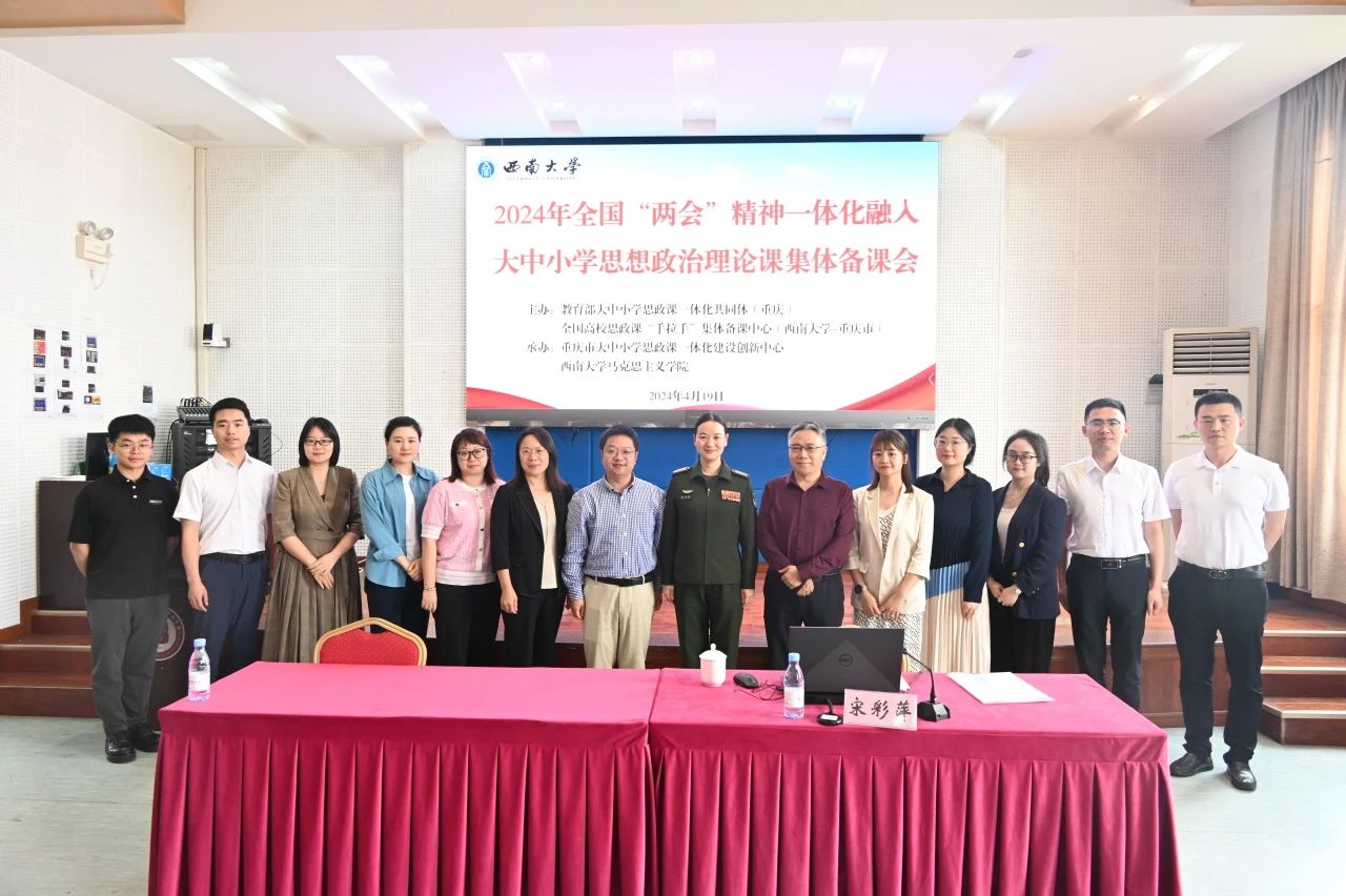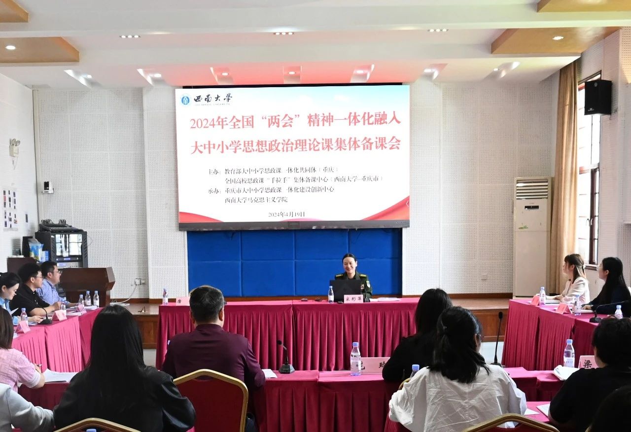 2024年4月19日下午,由教育部大中小学思政课一体化共同体(重庆)、全国高校思政课手拉手集体备课中心(伟德victor1946-重庆市)主办,重庆市大中小学思政课一体化建设创新中心、bv伟德国际1946承办的大中小学思想政治理论课教师集体备课活动在学院501报告厅举办,备课活动围绕2024年全国“两会”精神一体化融入大中小学思政课教学展开。集体备课会由专家领学、备课交流、专家点评和经验分享四个版块构成。