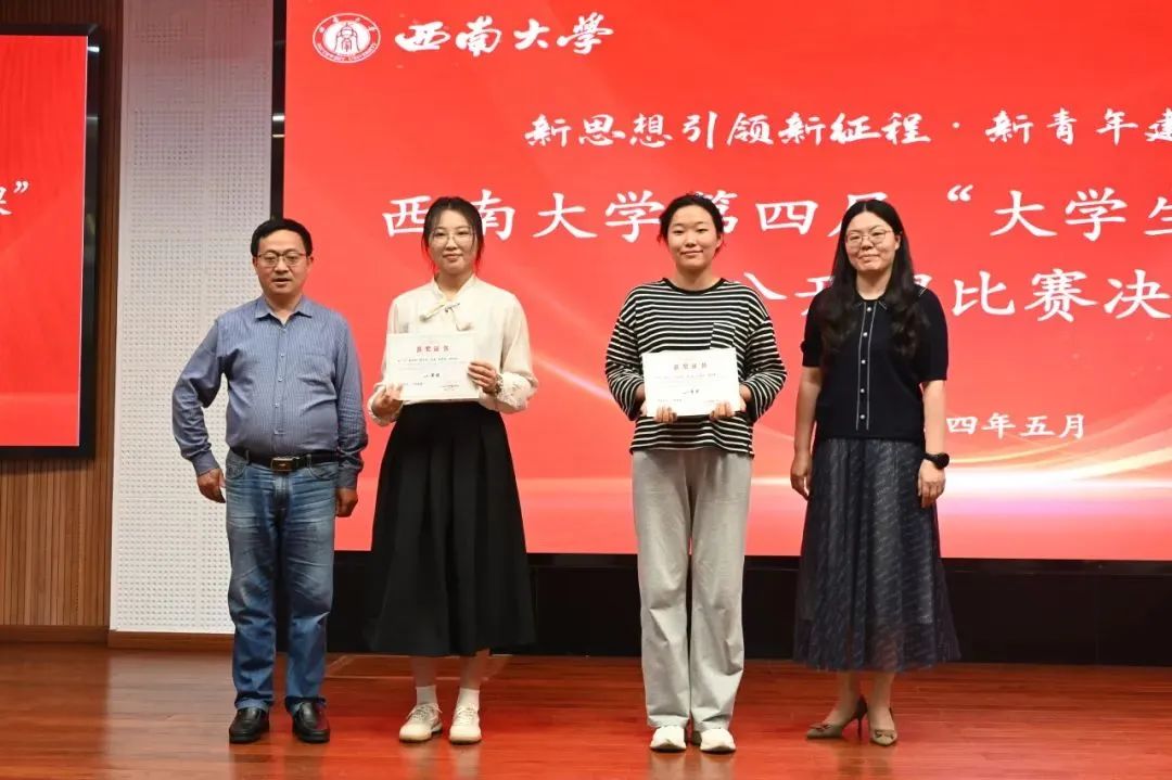 最后,根据评委们现场打分,bv伟德国际1946、商贸学院的参赛团队斩获一等奖,新闻传媒学院、历史文化学院 民族学院、西塔学院、外国语学院的参赛团队荣获二等奖,国家治理学院、生命科学学院、含弘学院、法学院、动物医学院的参赛团队获得三等奖。易艳华、薛钧君、令狐昌芹、陈玲、龚锦涛、白云华获得本次活动的优秀指导教师。与会的各位领导、嘉宾为获奖队伍和教师进行了颁奖。