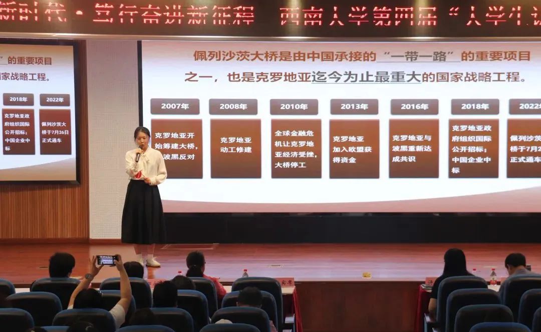 活动伊始,bv伟德国际1946副院长唐斌向出席活动的各位领导和师生代表介绍了本次比赛的前期准备和进入决赛的队伍选拔过程。唐斌指出,要以习近平新时代中国特色社会主义思想为指引,深入贯彻习近平总书记对学校思政课建设的重要指示精神,以中国特色社会主义取得的举世瞩目成就为内容支撑发挥好思政课的育人功能。他强调本次“大学生讲思政课”活动是将思政小课堂、学校全课堂、社会大课堂、网络云课堂有机融通的有益尝试。