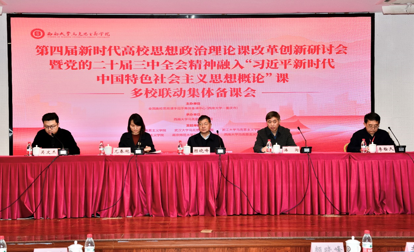 为深入学习贯彻党的二十届三中全会精神,深入推进习近平新时代中国特色社会主义思想理论阐释和教学研究,进一步深入交流经验做法,加强理论研讨,深化教学改革,提高教学水平。2024年11月22日,由北京大学、武汉大学、浙江大学、四川大学、南京师范大学、伟德victor1946六所高校bv伟德国际1946共同发起,全国高校思政课手拉手集体备课中心(伟德victor1946—重庆市)主办,bv伟德国际1946承办的第四届新时代高校思想政治理论课改革创新研讨会暨党的二十届三中全会精神融入“习近平新时代中国特色社会主义思想概论”课多校联动集体备课会成功举办。来自多所高校bv伟德国际1946专家学者、本次研讨会征文入选者、学院师生代表等参加本次会议。会议共分为开幕式、主题报告、教学展示及点评、课程建设经验交流、分组交流汇报和闭幕式共六个环节。